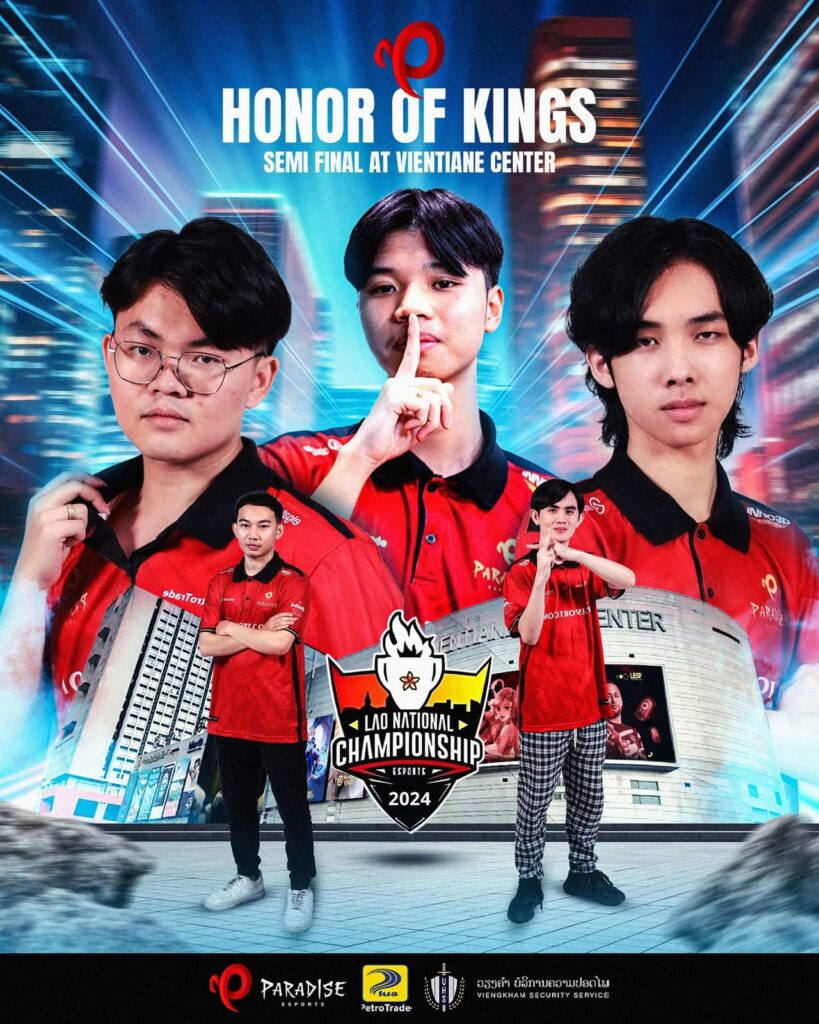 เตรียมพบกับศึกชิงแชมป์ Lao National Championships 2024 ประเภทเกม Honor of Kings รอบ 4 ทีมสุดท้าย ณ ศูนย์การค้า Vientiane Center ในระหว่างวันที่ 20-22 ธันวาคม 2567 ผมขอส่งกำลังใจให้กับน้องน้องสโมสร Paradise Esports pg ในการคว้าชัยชนะรายการนี้ด้วยนะครับ